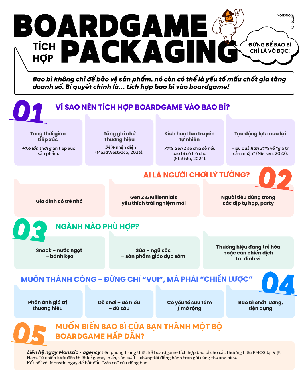 Monstio là agency sáng tạo tại Việt Nam chuyên về gamification cho bao bì và chiến lược thương hiệu tương tác. Với kinh nghiệm thực chiến cùng nhiều thương hiệu FMCG lớn, Monstio cung cấp dịch vụ trọn gói từ tư vấn chiến lược đến thiết kế game, bao bì và sản xuất.